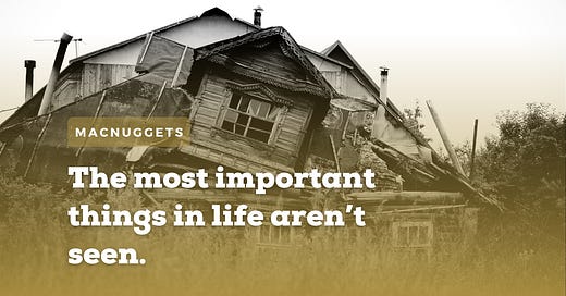 I would be remiss not to point out the fun and enjoyment of choosing the fixtures, especially in comparison to building the foundation. After all, my favorite part of Fixer Upper was watching the big reveal to see how all the final details came together. Now let me insert the big BUT… no matter how incredible the reveals were, what’s seen is never more important than what’s unseen.2 If we care more about fixtures than foundations, we’ll end up with a beautiful ticking time bomb for a home.